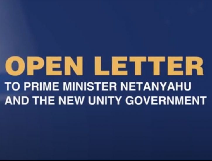 Dear Prime Minister Netanyahu and the New Unity Government Ministers,